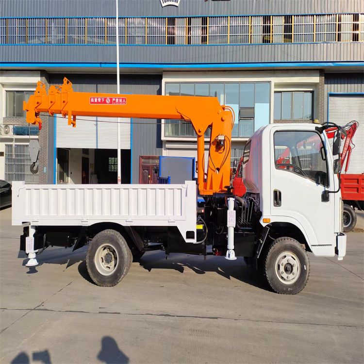 嵩明县重汽豪曼小型四吨直臂蓝牌随车吊厂家 起重机价格